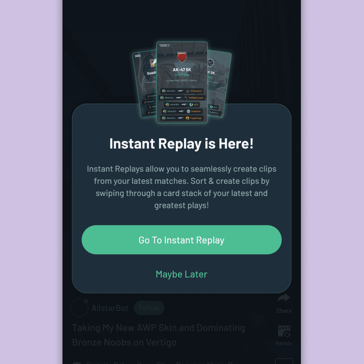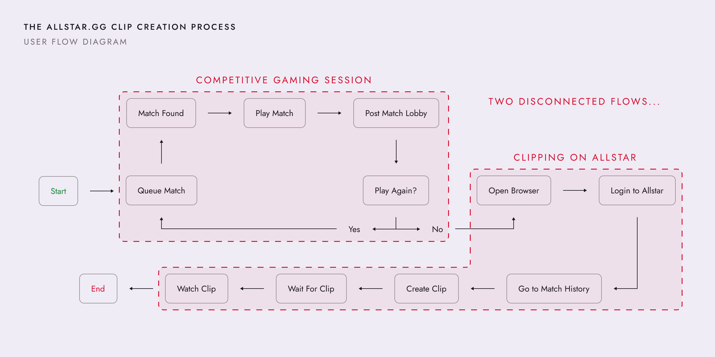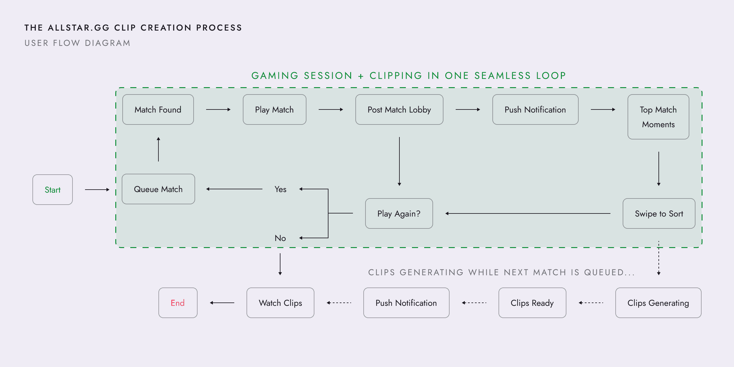 By shifting clip creation from being user-driven to Allstar-driven, we allowed the user to naturally integrate our app into their existing gameplay habits. I learned that reducing the interaction cost, even by just a few clicks, can be the difference between a product that feels like a chore and one that feels like magic.