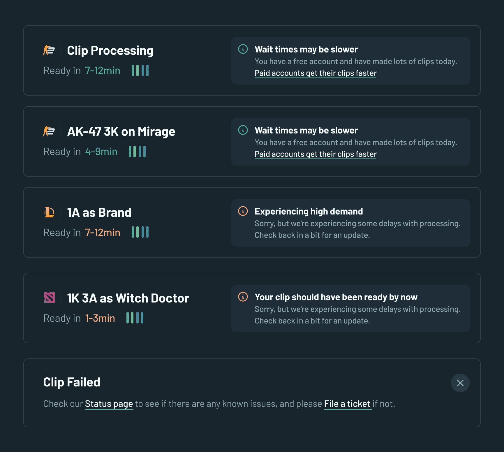 By visualizing key match data like maps and weapon icons, the card allows players to identify their in-game moments at a glance. It bridges the information gap, giving users the confidence to approve a clip without needing to wait for a video to load.