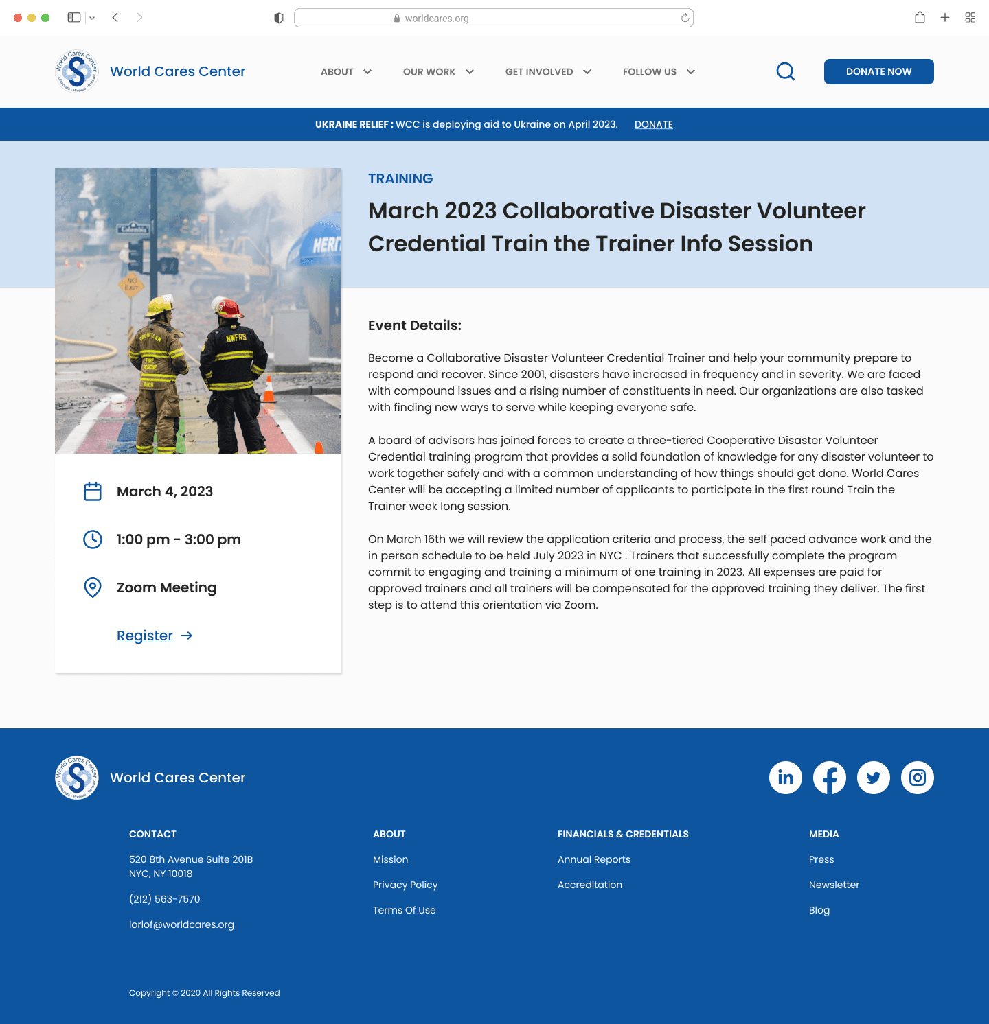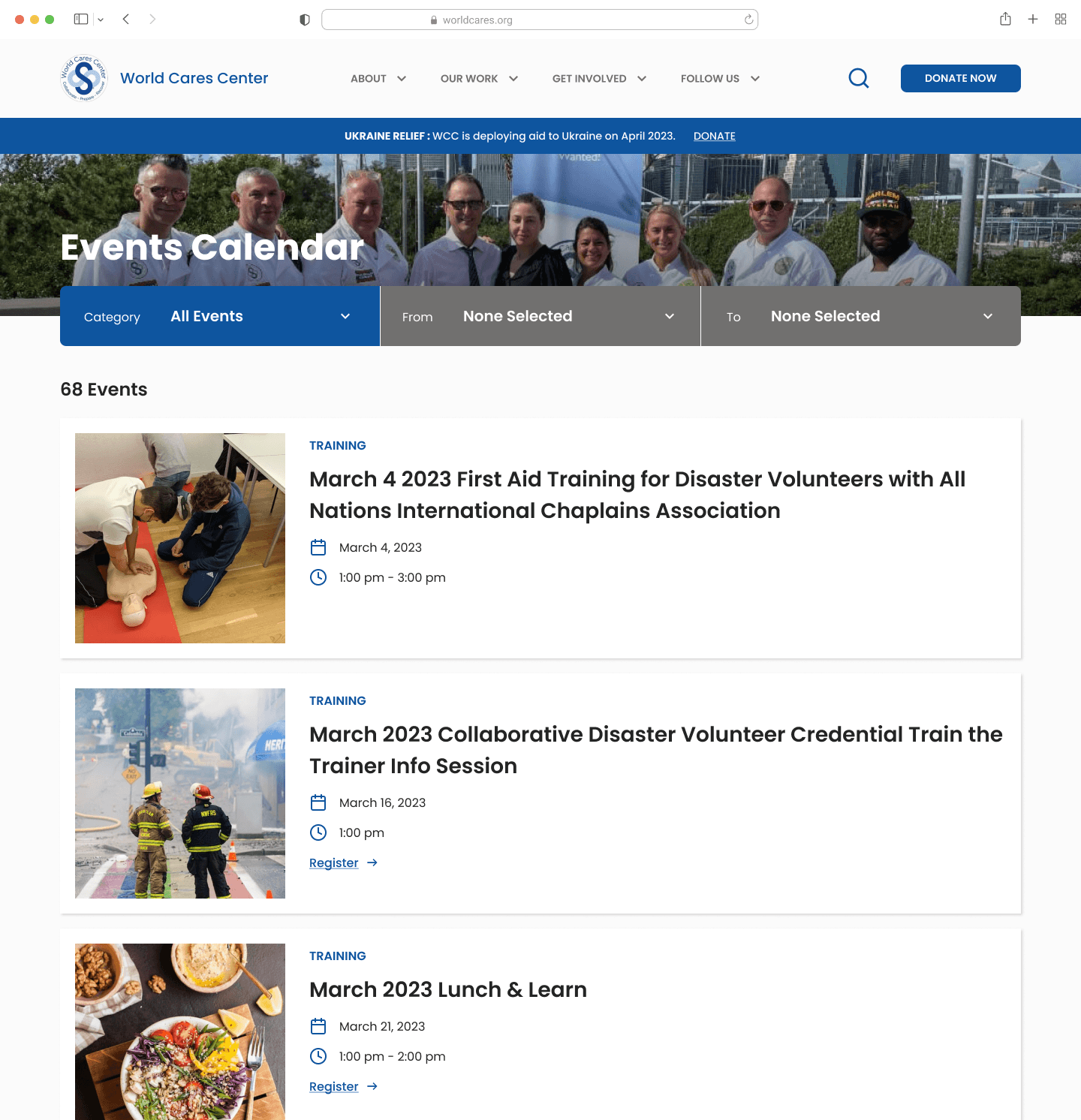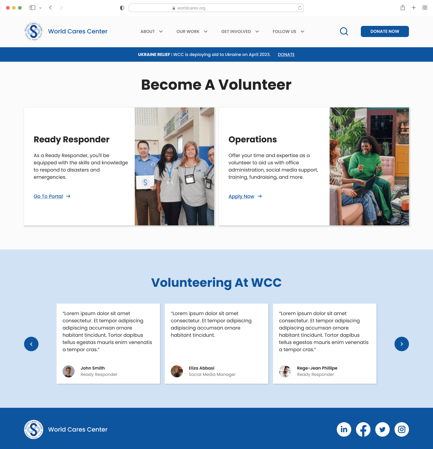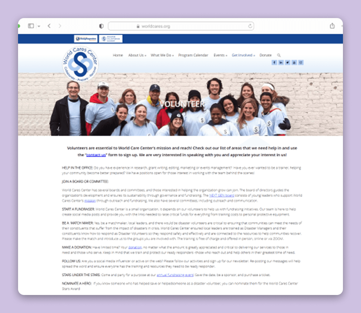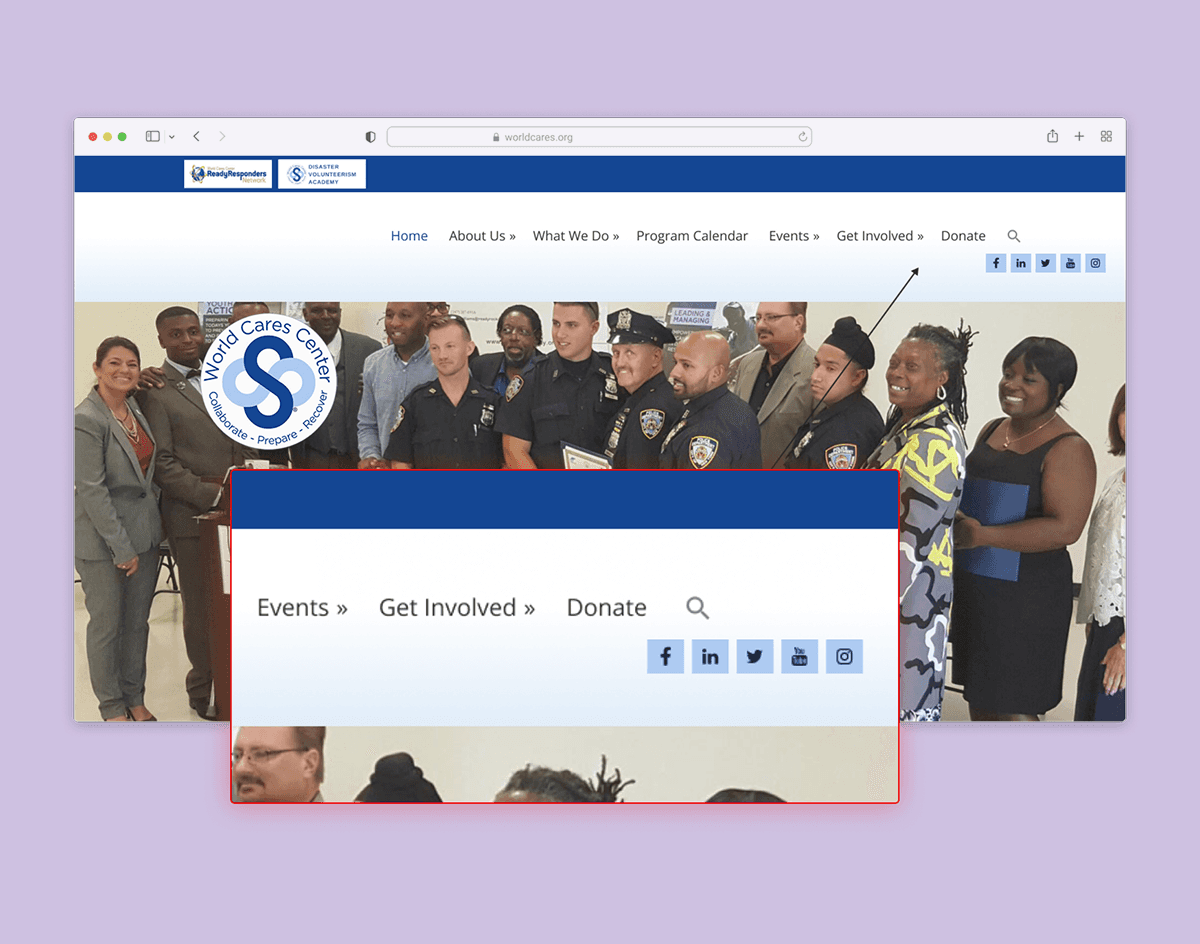 World Cares Center is a nonprofit that provides training, supplies, and relief to disaster stricken communities. When I joined the project, the organization's website was barebones, running solely with the help of volunteer developers and graphic designers.