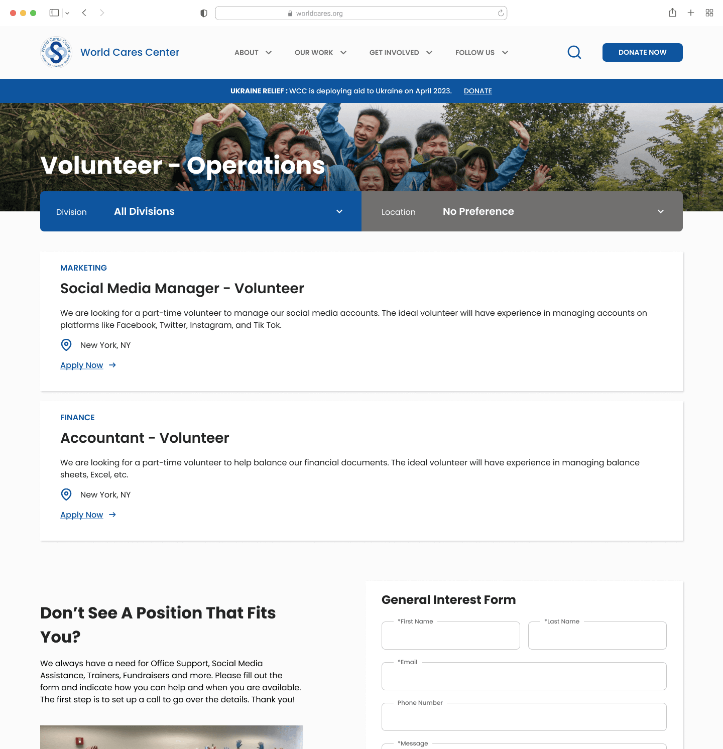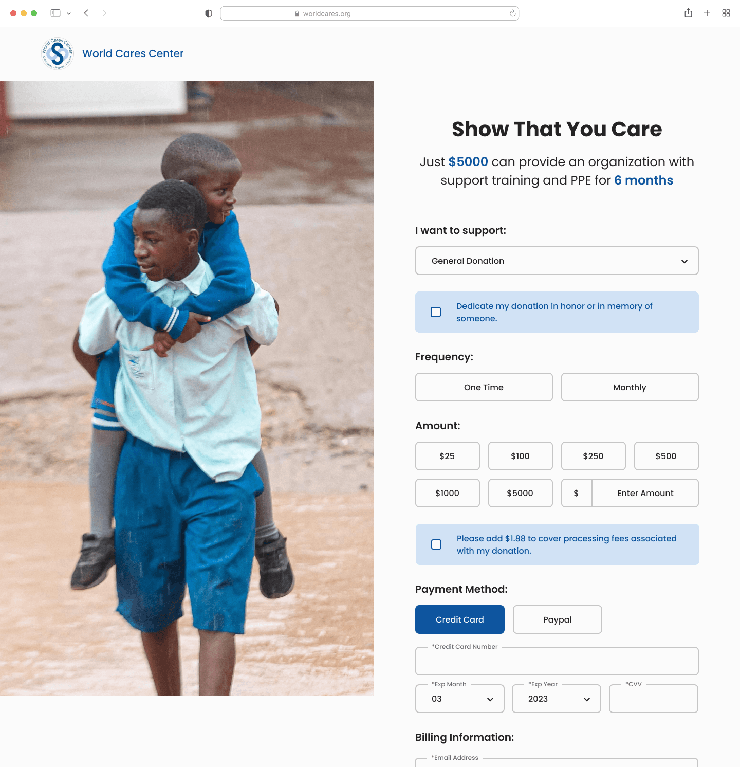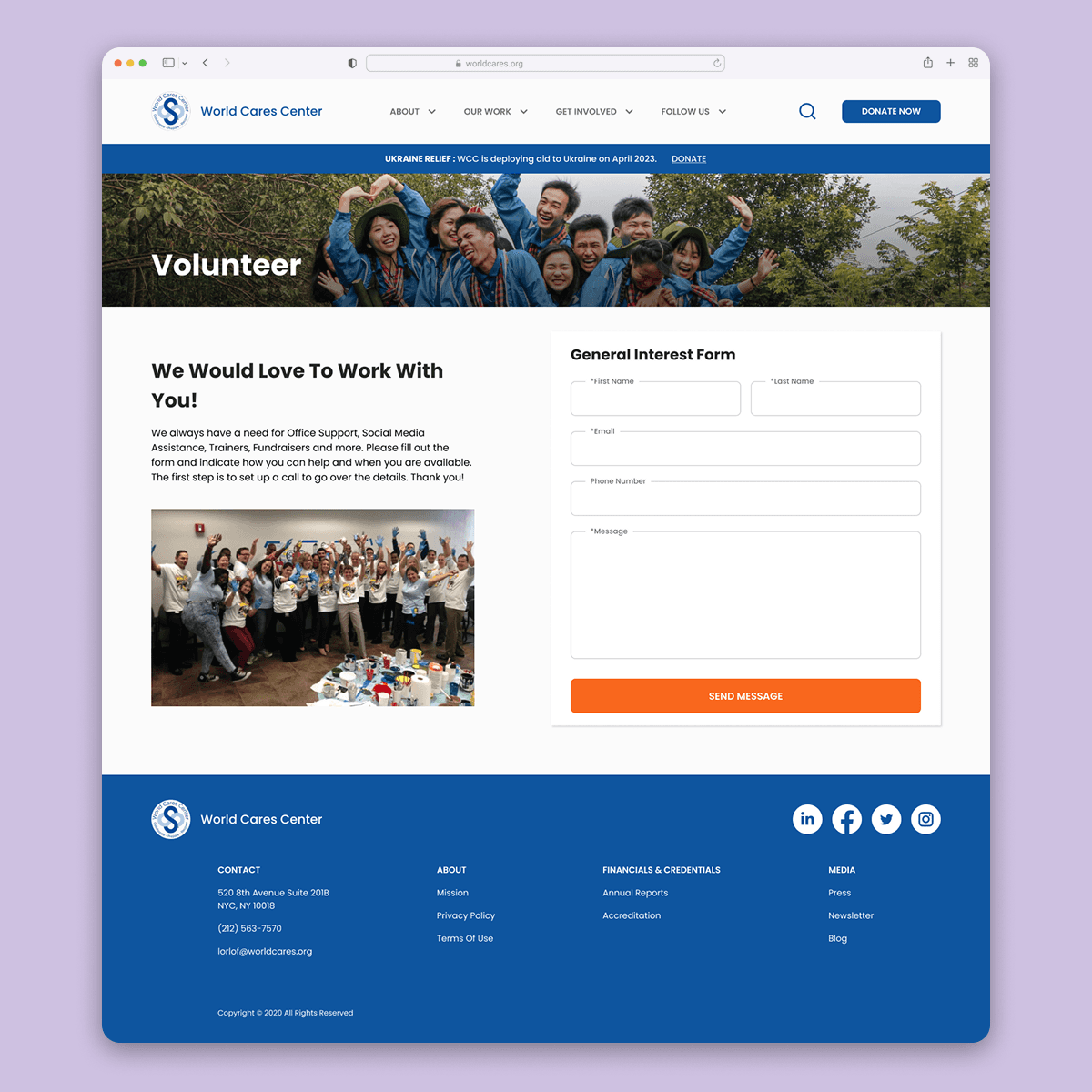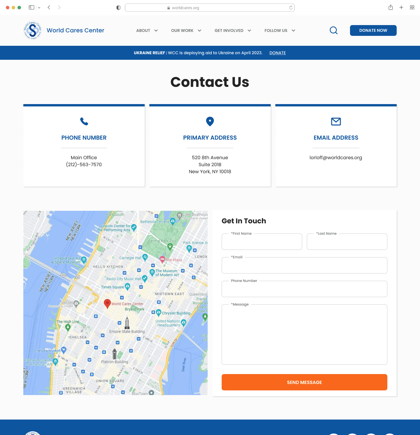 World Cares Center is a nonprofit that provides training, supplies, and relief to disaster stricken communities. When I joined the project, the organization's website was barebones, running solely with the help of volunteer developers and graphic designers.